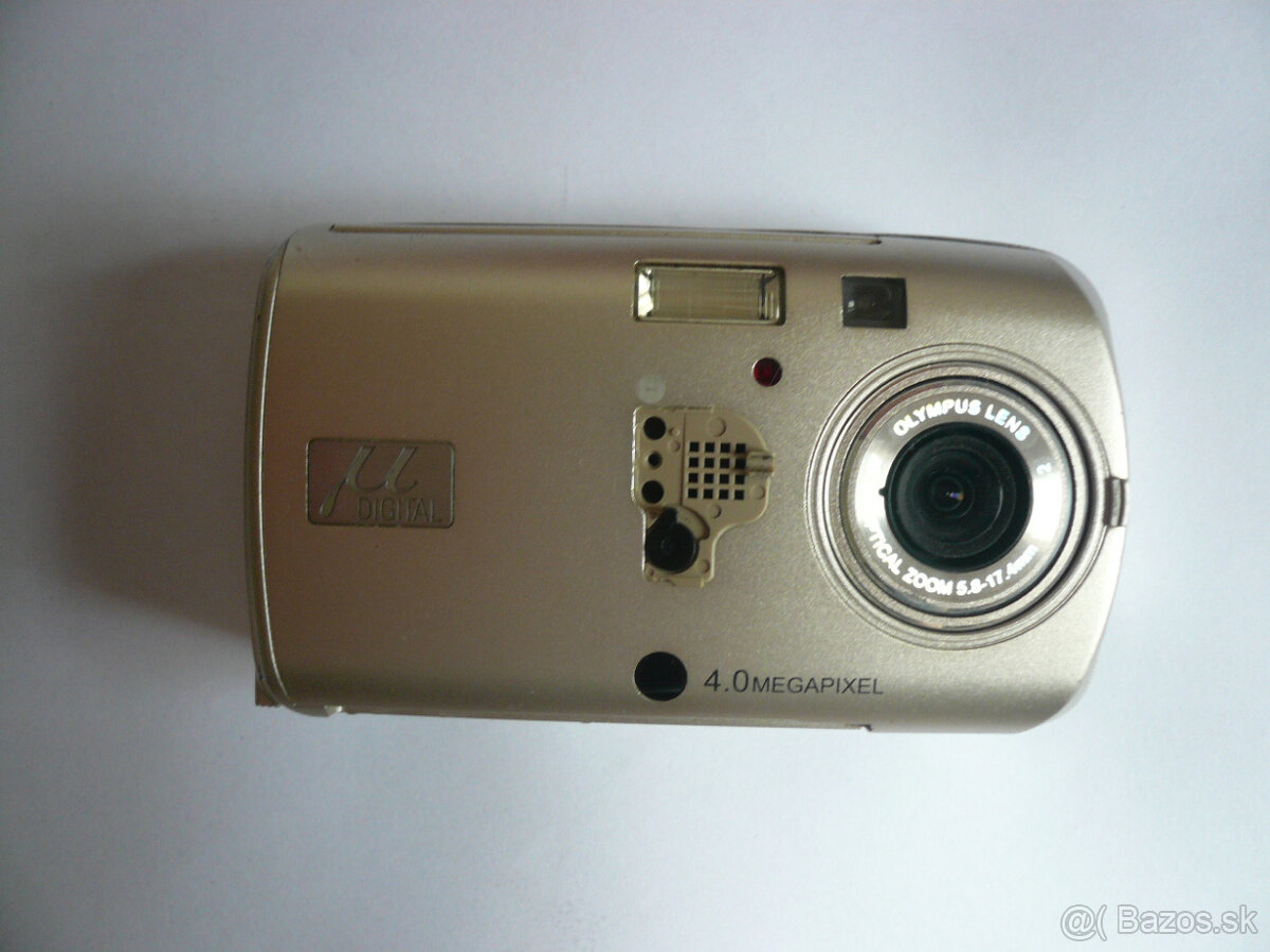 Pokazený Olympus mju 410 v originálnom balení - nefunkčný spínač na posuvnom kryte - slúži na zapnutie fotoaparátu. Bez batérie.