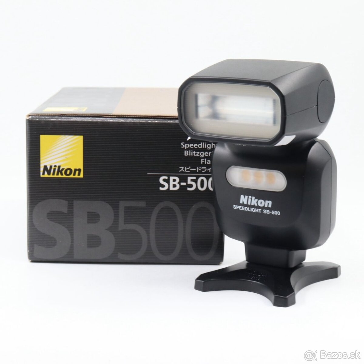 Ponúkam na predaj externý blesk Nikon Speedlight SB-500, plne kompatibilný so systémom Nikon Creative Lighting System (CLS). Blesk umožňuje bezdrôtové ovládanie viacerých bleskov a podporuje automatický režim merania i-TTL.