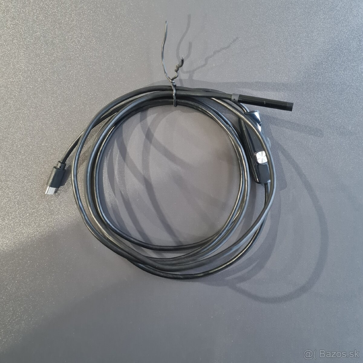 Tvrdý kábel, používanie s mobilom. Má aj svetlo. Dĺžka kábla 2m