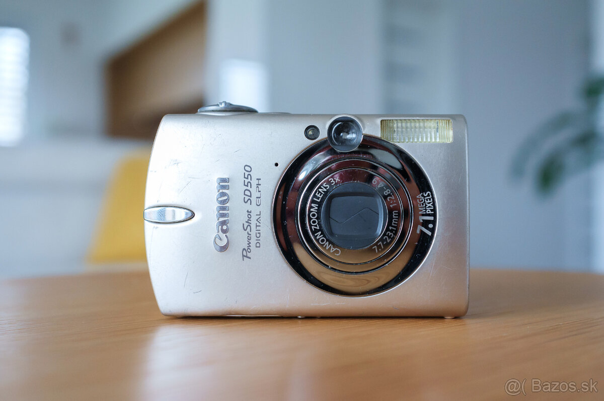 Predám Canon PowerShot SD550 Digital ELPH, štýlový kompaktný digitálny fotoaparát v striebornom kovovom prevedení s výrazným vintage charakterom. Ponúka rozlíšenie 7,1 MP, 3× optický zoom a svetelnosť f/2.8, vďaka čomu vytvára typický „oldschool“ CCD look fotografií, ktorý je dnes veľmi vyhľadávaný.