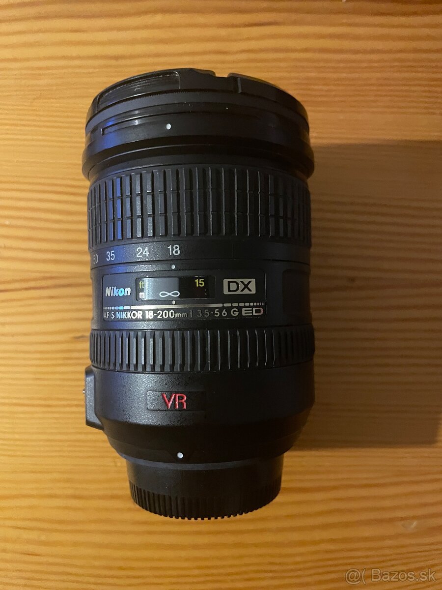 Predam tele objektiv Nikkor 18-200 mm VR DX 1:3.5-5.6 ED, je vo vynukajucom stave, mechaniky idu stale lahko. Ma obe krytky, slnecnu clonu, obal a je na nom nasadeny UV HMC filter. Viem priviezt na trase LM-BA.