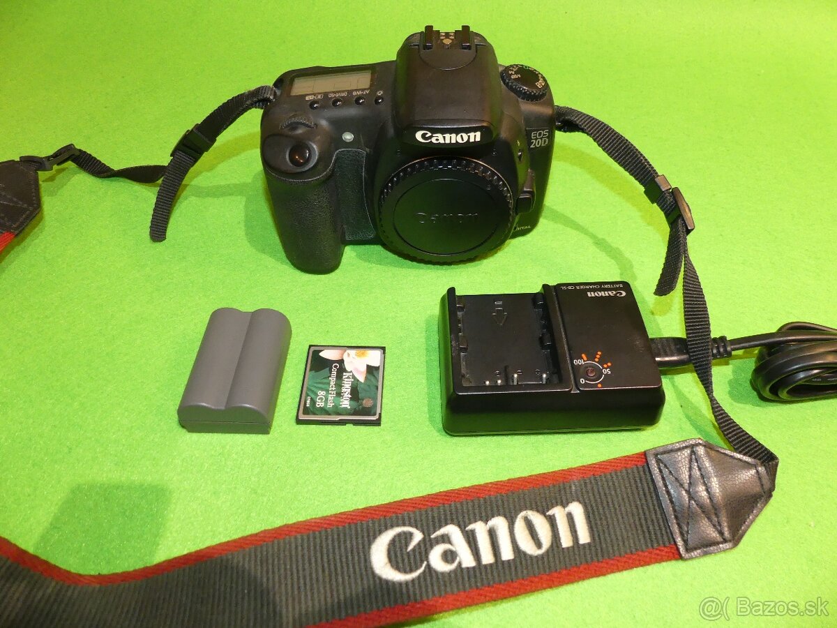 Predam kvalitnú digitálnu zrkadlovku Canon EOS 20D spolu s 8 GB CompactFlash kartou.