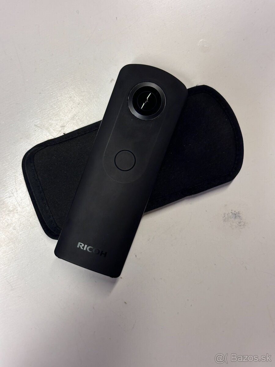 Plne funkčná 360‑stupňová kamera Ricoh Theta S v zachovalom stave, vhodná na virtuálne prehliadky, cestovanie, videoblogy či kreatívne 360° zábery.