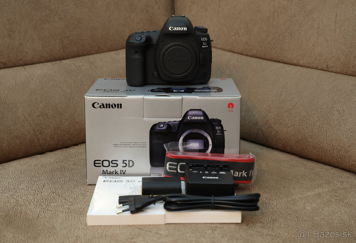 Predám digitálnu zrkadlovku Canon EOS 5D Mark IV. Fotoaparát nenesie známky používania, je plne funkčný, počet cyklov uzávierky 42 362, sklopenia zrkadla 29 841 z výrobcom deklarovaných 150 000. Snímač je čistý, ovládacie prvky reagujú presne, AF pracuje spoľahlivo. Fotoaparát bol používaný s nasadeným ochranným sklom na displeji. Súčasťou predaja je krytka, krabica, originálna batéria, nabíjačka a prepájacie káble. Som prvý majiteľ.