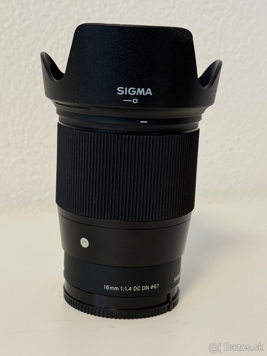 Predám svetelný objektív Sigma 16mm f/1.4 DC DN Contemporary pre Sony E (APS-C).
