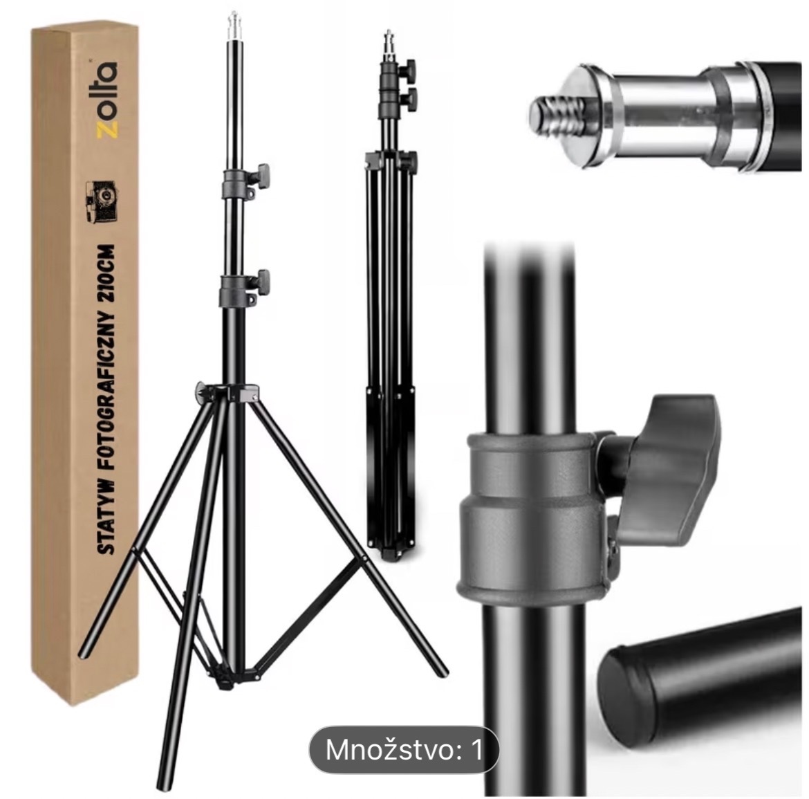 Predám nepouzity čisto nový statív. Celková výška 70-210cm, podľa obrázku. Uchytenie 16mm priemer a závit 1/4”