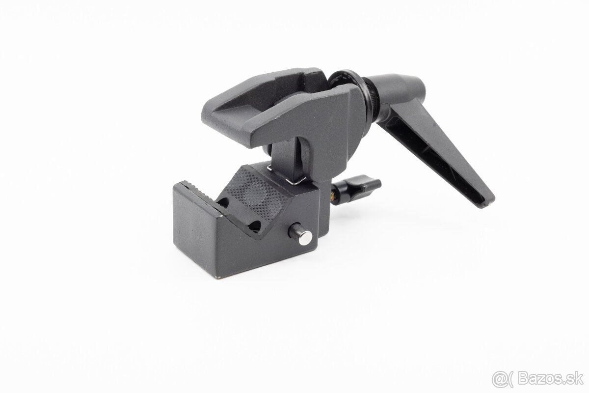 SUPER CLAMP je unikátna viacúčelová svorka, ktorou pripevníte držiak spignotu pre zábleskové svetlo, (doplnený i o 3/8""a 1/4"" závity za ktoré môžete pripevniť napr. externý blesk fotoaparátu, alebo doštičku zo statívu pre fotoaparát) k akémukoľvek statívu alebo tyči.