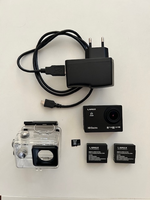Predám akčnú kameru LAMAX, 2 batérie, SD-karta, vodotesné púzdro, veľa príslušenstva.