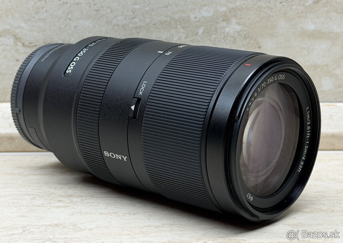 Predám objektív Sony E 70-350mm f/4.5-6.3 G OSS. Je ako nový, pripravený na ďalšie používanie. Bol iba odskúšaný a odložený. Nový Sony SEL70350G.SYX zoomový superteleobjektív s rozsahom svetelnosti f/4,5-32. Maximálna ohnisková vzdialenosť objektívu je 350 mm. Objektív je určený pre formát snímačov APS-C. Objektív je naviac vybavený vstavanou optickou stabilizáciou obrazu, ktorá zabezpečuje ešte väčšiu stabilitu a úžitkovú hodnotu tohto univerzálneho zoomového teleobjektívu, ktorý sa ideálne hodí pre fotografovanie krajiny a divokej prírody. Objektív ponúka až 5x zoom. Priemer závitu filtra má rozmer 67 mm. Okrem všetkého je objektív vybavený aj motorčekom AF (AutoFocus). Počet lamiel clony 7. Okrem všetkého nechýba ani jeden asférický člen ktorý potláča optickú aberáciu a zaisťuje výnimočné rozlíšenie až po okraje záberu.