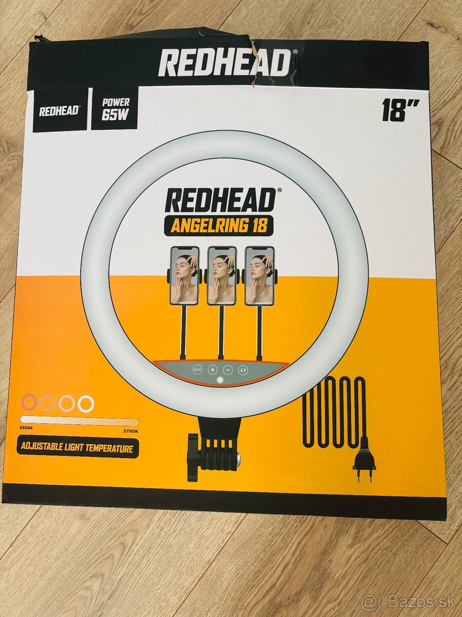 Predávam nové, nepoužívané kruhové led svetlo značky Redhead s priemerom 46cm, s výškovo nastaviteľným statívom do 2,8m. Možnosť nastaviť intenzitu a farbu svetla pomocou diaľkového ovládača. Držiaky na 3 telefóny