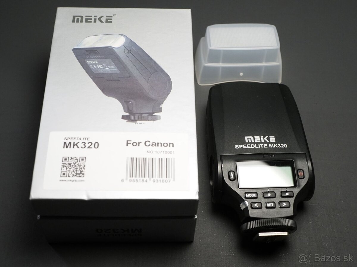 Darujem blesk Meike MK320 pre Canon. Zrejme umrela výbojka. LED osvetlenie funguje, aj display.