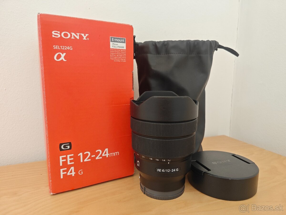 Prodám objektiv Sony FE 12-24mm f4 G. Objektiv je plně funkční a ve velmi pěkném stavu. Optika je bez škrábanců nebo jiných vad. Součástí prodeje jsou obě krytky, originální balení a přepravní vak.