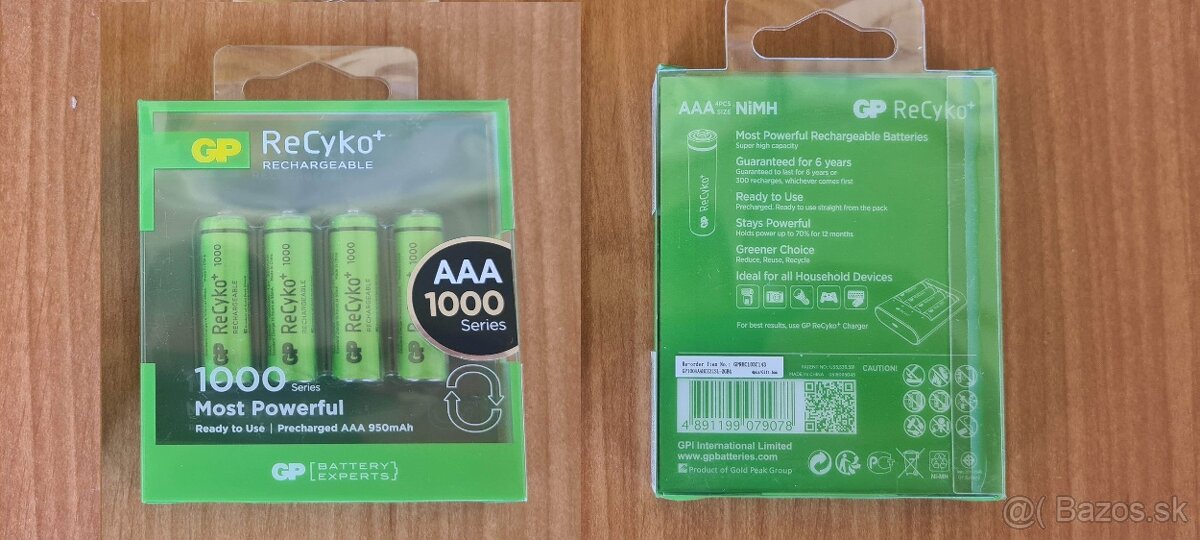 Predám nabíjacie baterky GP RECYKO+ balene po 4 kusy. Baterky sú mikrotužkové AAA. Batérie sú nove zabalene v pôvodnom obale, Cena je 10 eura za balenie 4 kusov bateriek.