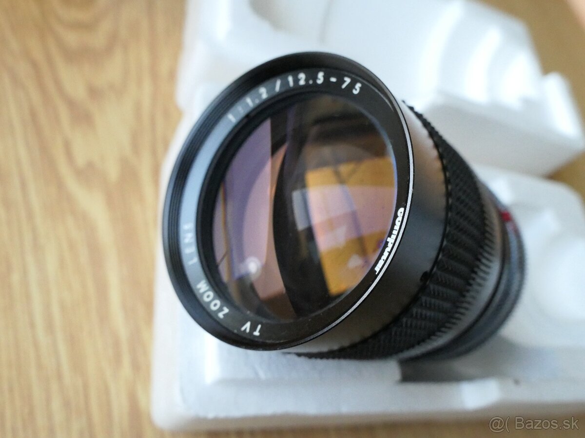 2 - COMPUTAR -TV Zoom Lens 1:1.2/12.5-75,závit M25,závit na filtre M54,obe krytky,v.č.141078,použité,cena – 26,50€