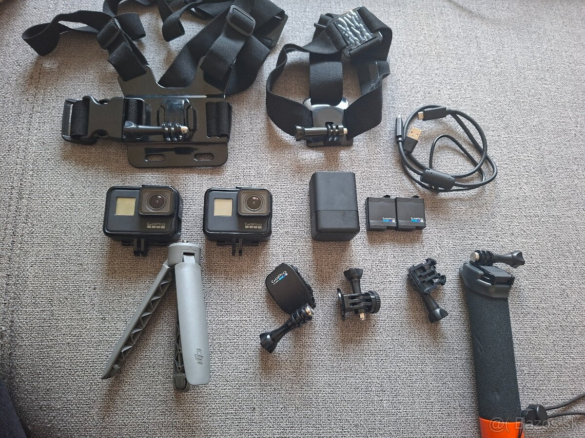 Predam dve kamery GoPro Hero 7, plus dve nahradne baterie, nabijacka, drziak na hlavu, drziak na hrud a vsetko co je na obrazku za 180eur. Top stav.
