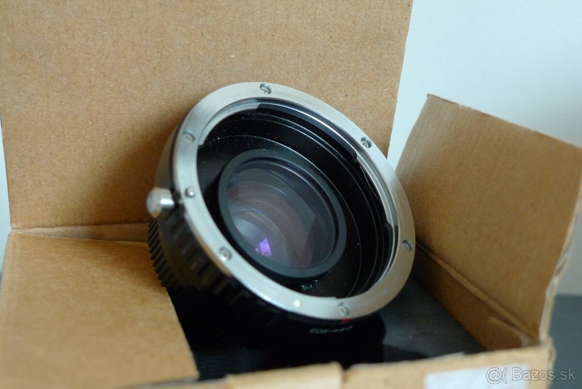 Predam uz nepouzivany speed booster (focal reducer) z bajonetu EF na M4/3 (MFT). NEMA elektroniku, auto focus ani zmena clony sa z fotoaparatu nebude dat nastavit.