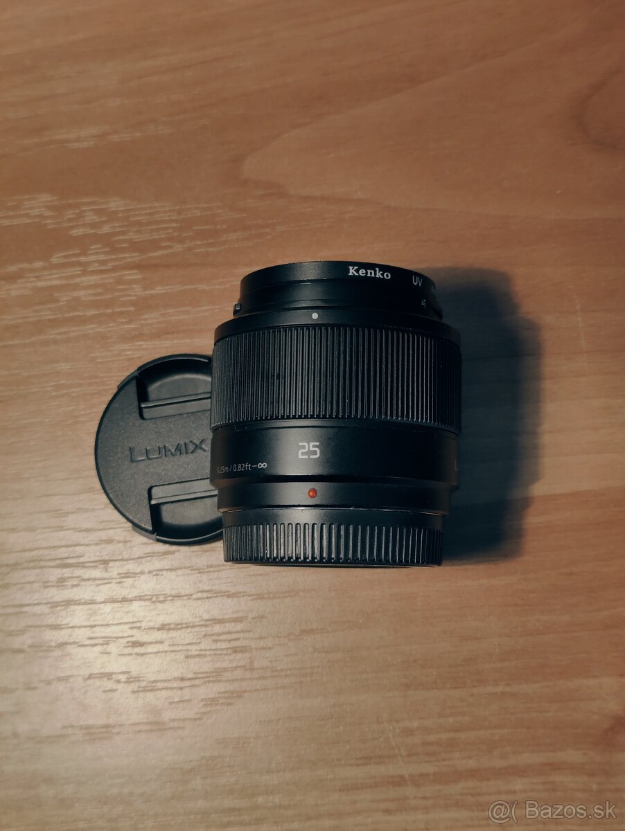 Predám objektív Panasonic Lumix G 25mm f/1.7 ASPH, obe krytky,UV filter.