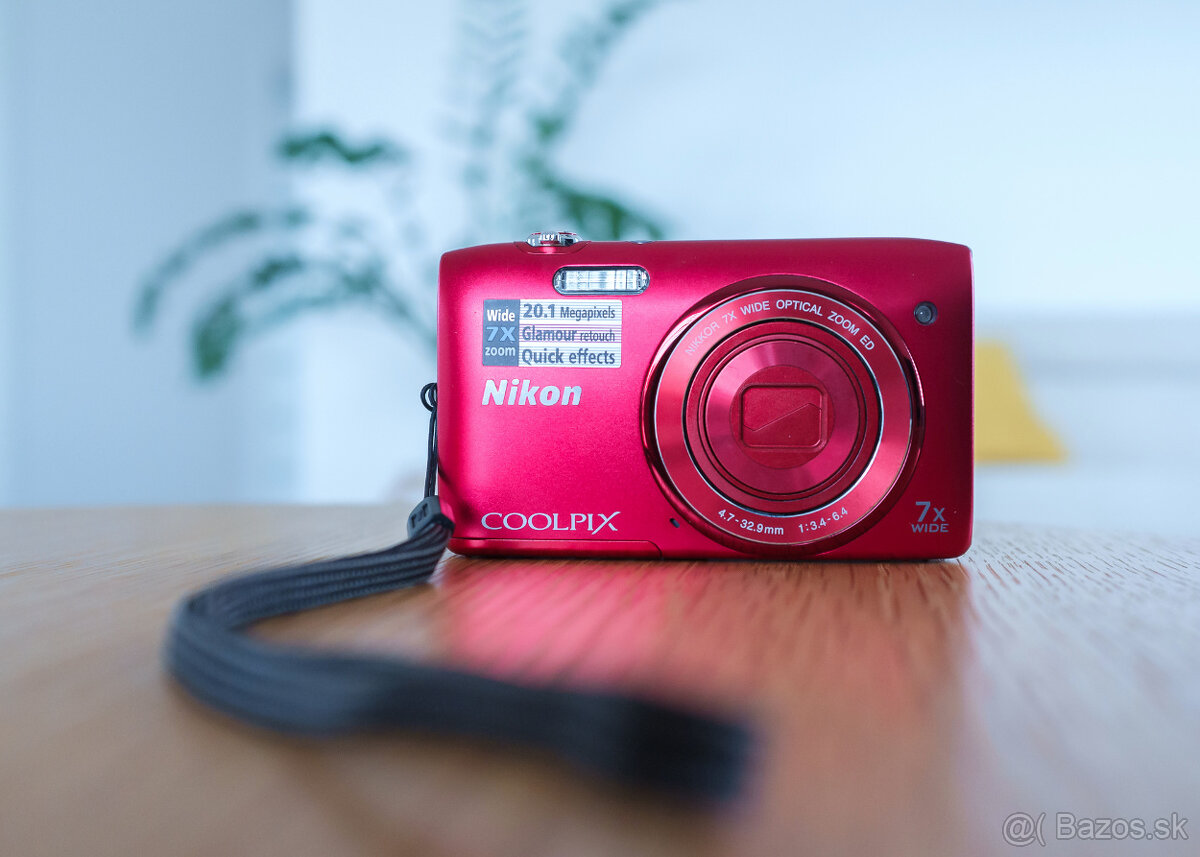 Predám Nikon COOLPIX S3400, elegantný a ľahký digitálny kompakt v atraktívnej červenej farbe. Ponúka až 7× optický zoom vďaka čomu je ideálny na každodenné fotenie, cestovanie aj rodinné momentky.