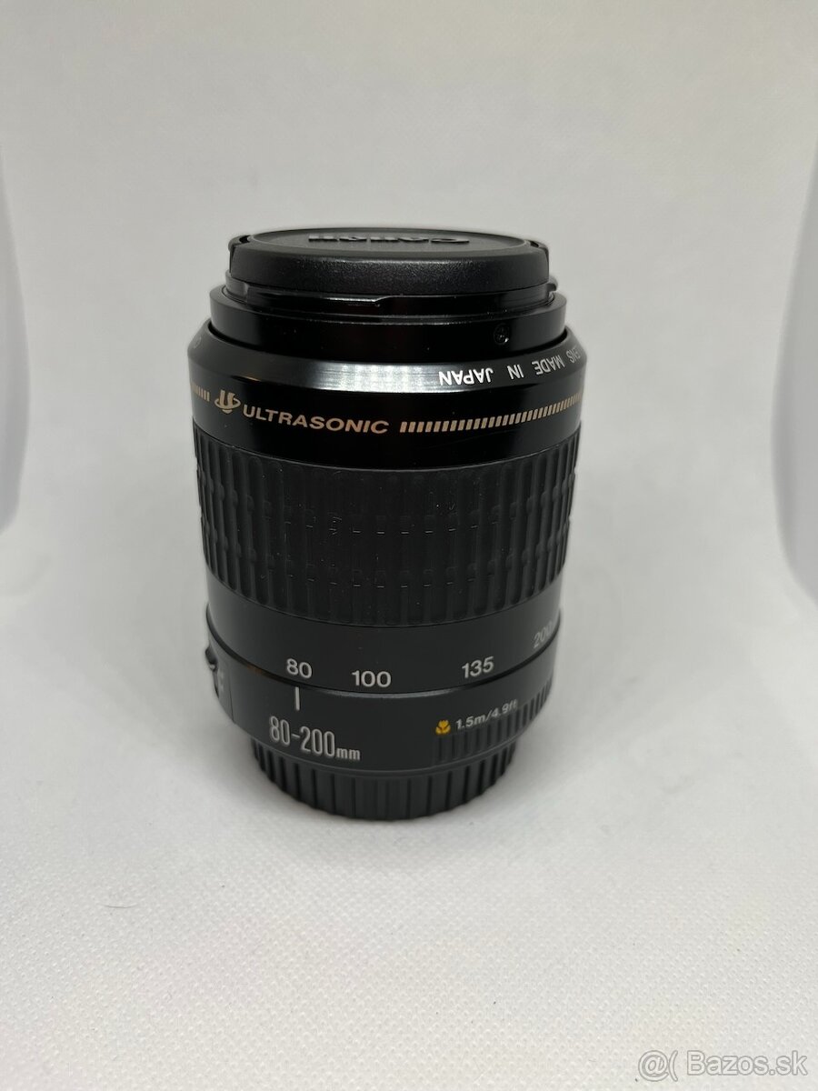 Pred8m objektív Canon EF 80-200mm f/4.5-5.6 vo veľmi dobrom stave. K objektívu obe krytky, plne funkčný, bez prachy, sklá čisté. K objektívu gumená slnečná clona.