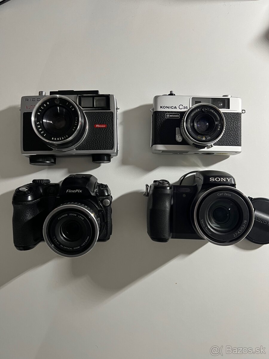 Predám tieto staršie fotoaparaty. 2 na film (analog) 2 digitálne. Funkčnosť overiť neviem. Cena za všetky spolu. Ideálne ich chcem aj tak predať.